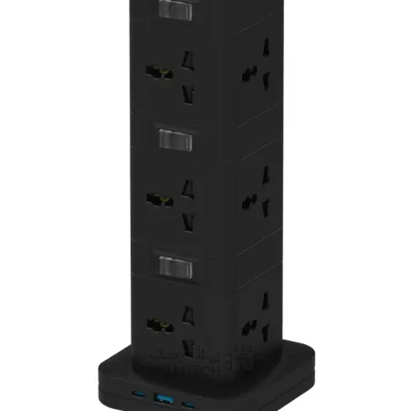 هاب برق سهطبقه پرودو مدل Three-Story با ۱۲ پریز و پورتهای USB-C PD و QC3.0 (مدل PD-FWCH042-BK)